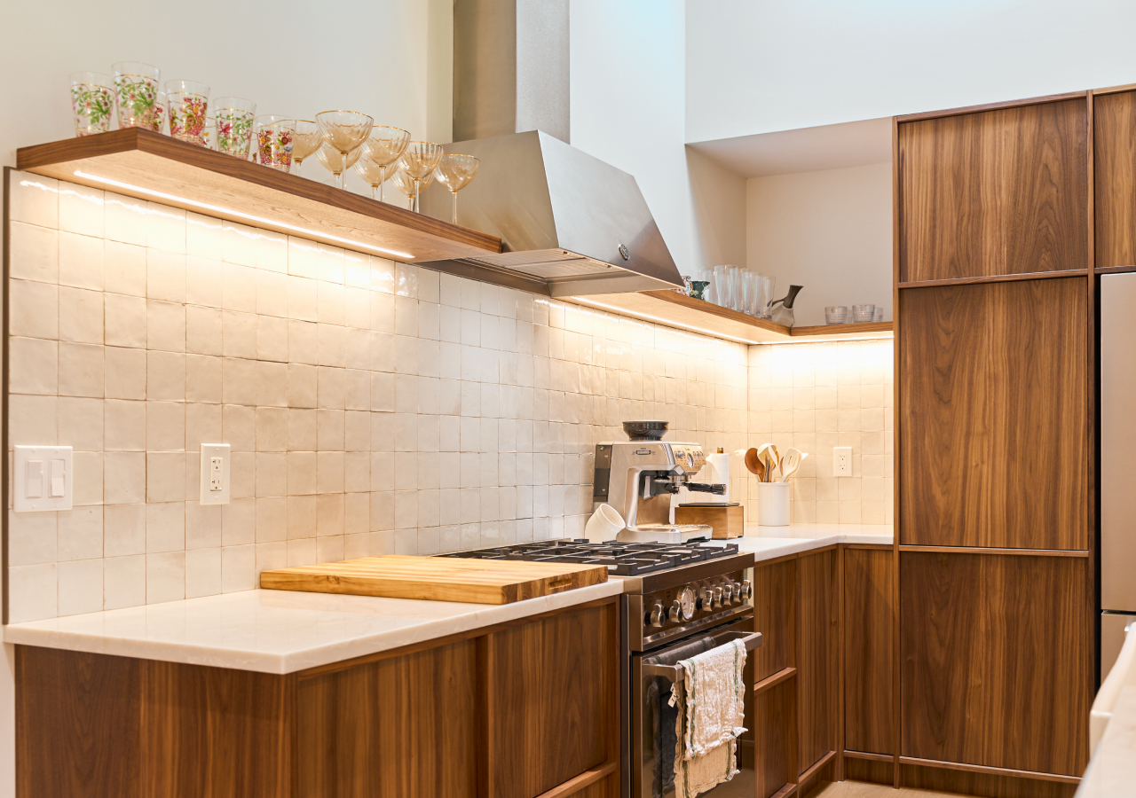 Open shelving can look great in Scandinavian and Japandi kitchens—but only when it’s backed by strong closed storage. Open shelves should hold a small set of useful, beautiful items; everything else needs a hidden home, or the kitchen quickly starts to feel visually busy.