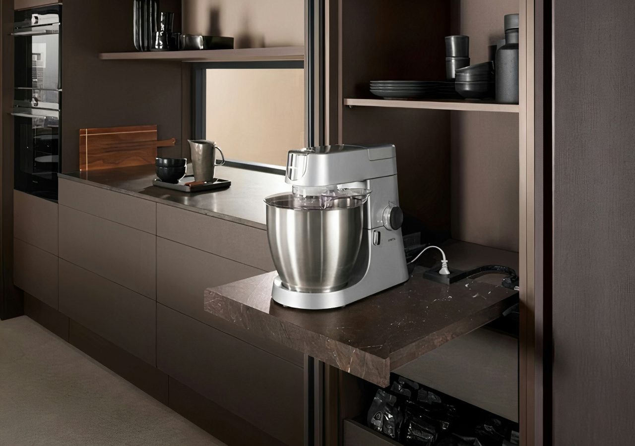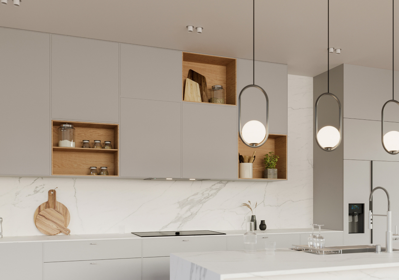 Shelving defines both the appearance and functionality of a kitchen. Open shelving is ideal for quick access and visual lightness, while adjustable and pull-out shelves help to conceal items, and lighting provides clarity and ease of use. Small details such as wall shelves, stands, and pull-out niches for aprons create a more relaxed atmosphere and simplify everyday life.