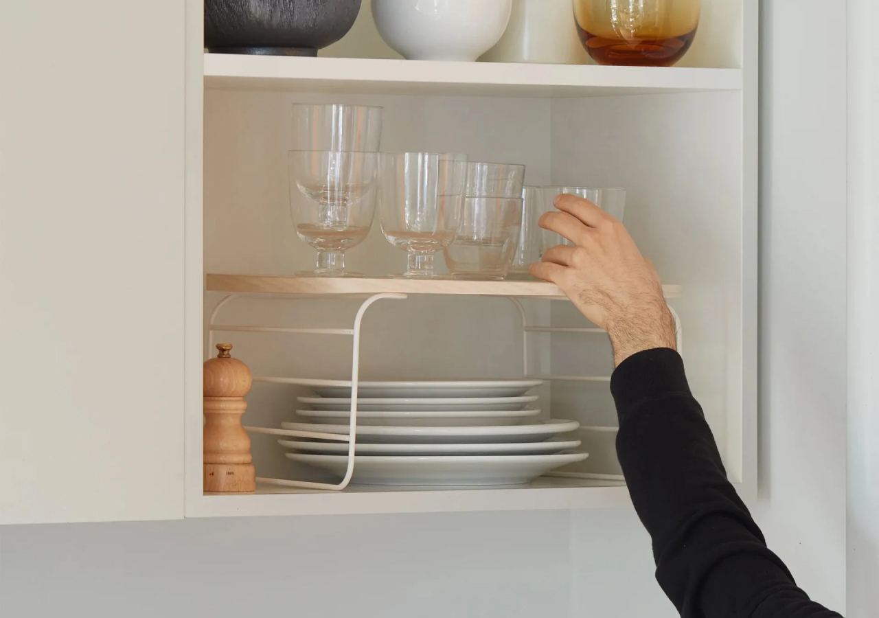 Place the shelves strategically: too many levels make it difficult to access items, while a few well-placed tiers create a convenient and functional storage system. This approach allows you to use the space as efficiently as possible, keeping your cabinets tidy and easy to use.