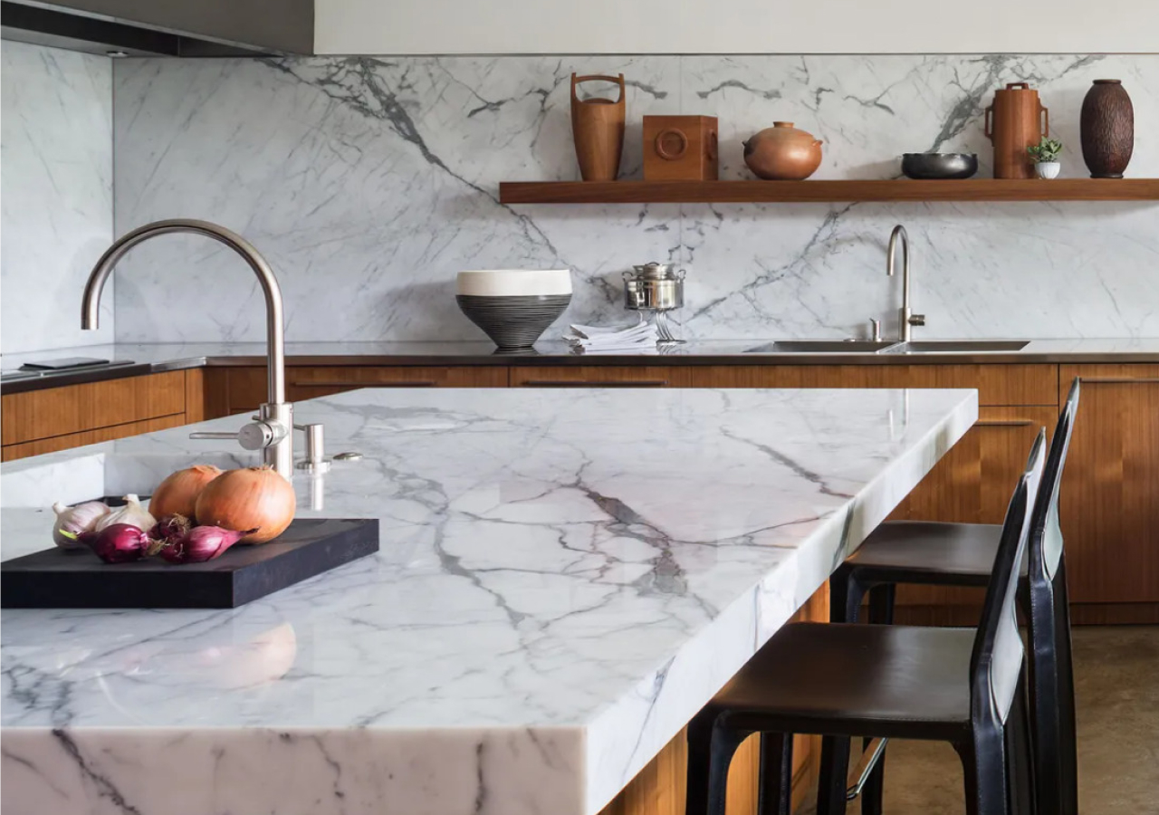 Marble is one of the most beautiful and expressive countertop materials. Its veining and softness can give a kitchen a timeless and elevated feel. It is especially loved by homeowners who are willing to accept a little wear in exchange for visual richness.