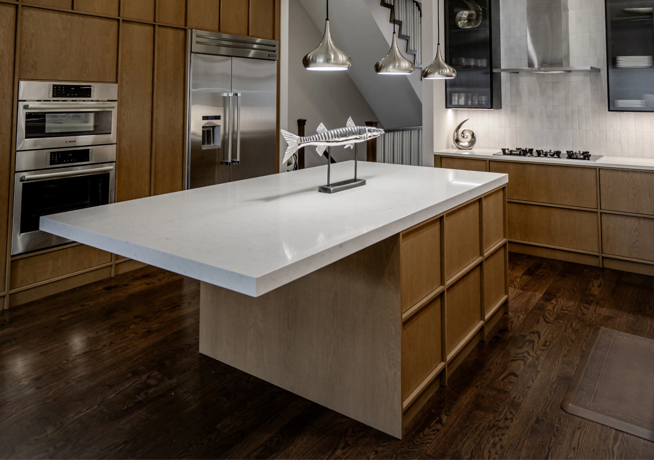 A Scandinavian look often comes from low-gloss finishes, natural wood tones, and simple edge details. A Nordic kitchen island tends to feel best when materials age well and maintenance stays straightforward. Quiet countertop patterns usually support calm better than busy veining or high-contrast movement.