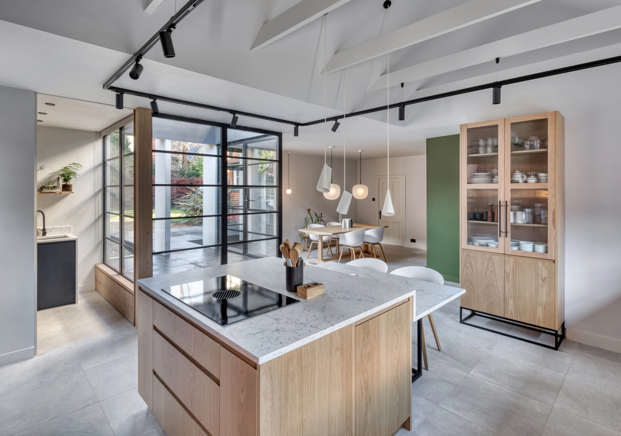 This zone supports eating, socialising, and hosting and should be close to the cooking area without blocking movement between key appliances.