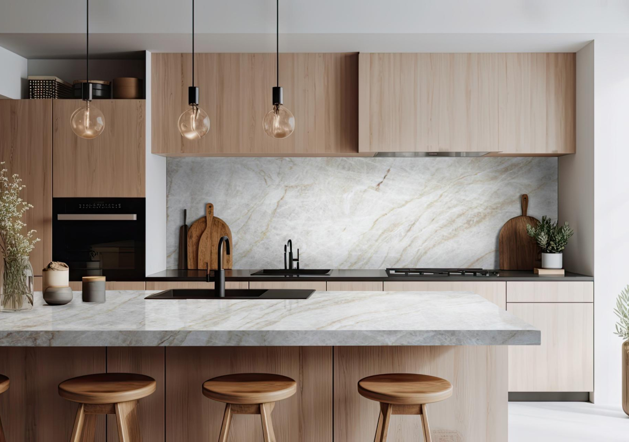If your version of modern leans toward natural materials, warm minimalism, and quiet luxury, quartzite often feels more right. It has organic depth and variation that reads more tactile and premium, especially alongside wood cabinetry and soft neutral palettes.