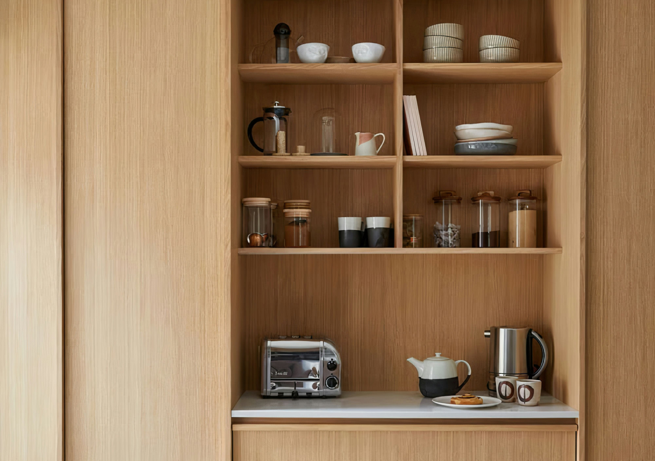 An appliance garage gives your coffee gear, toaster, and blender a dedicated home. The best part is that it’s not just storage; it’s workflow. You can keep appliances plugged in and ready, then close the front, and the kitchen resets instantly. In open-plan homes, that instant reset is the difference between a kitchen that always looks mid-task and a kitchen that always looks intentional.