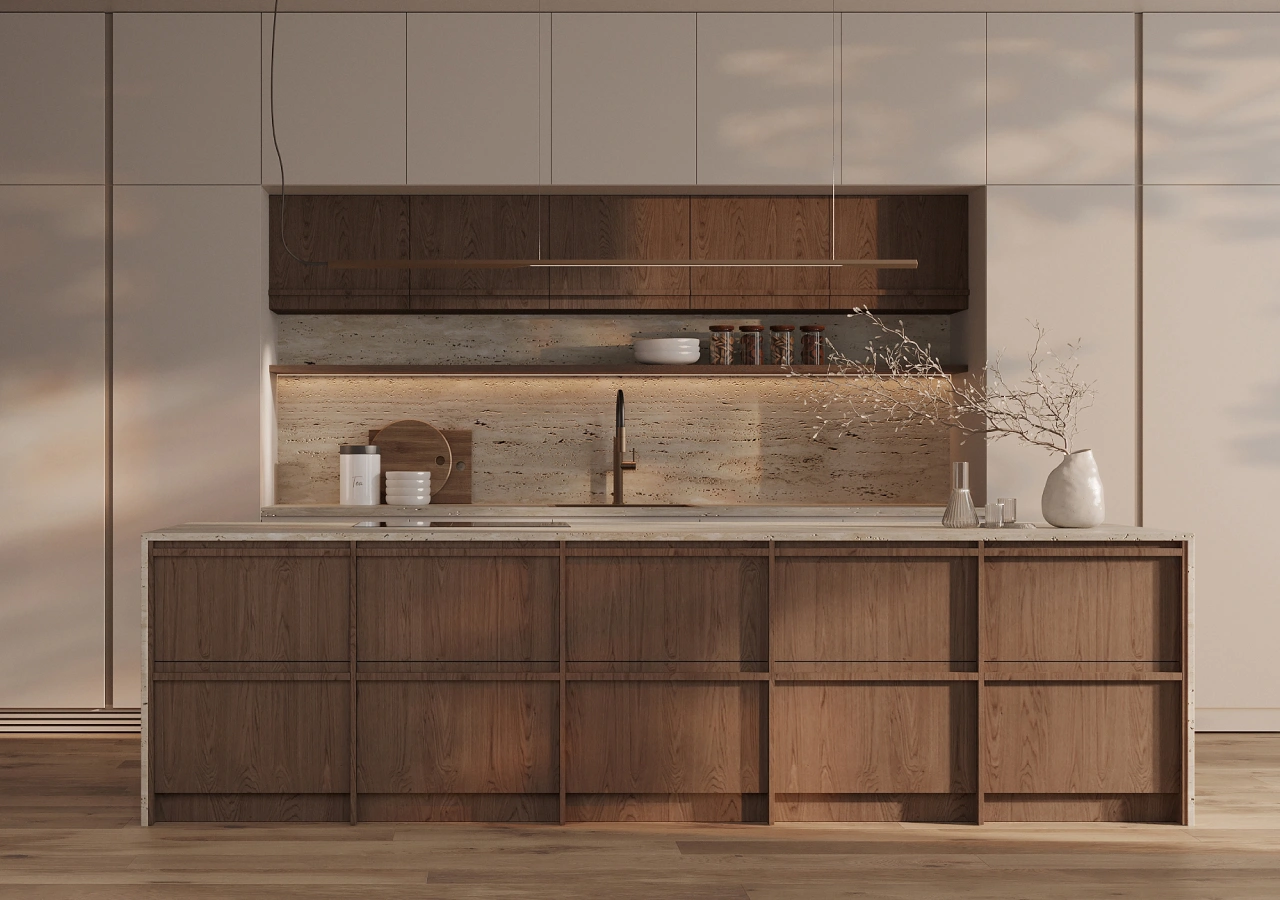 Another consideration is fingerprints and smudges. Slab fronts and push-to-open zones tend to get touched more often. If constant wiping is a concern, it's best to opt for finishes that better conceal handling marks, such as mid-tones, subtle textures, or natural wood.