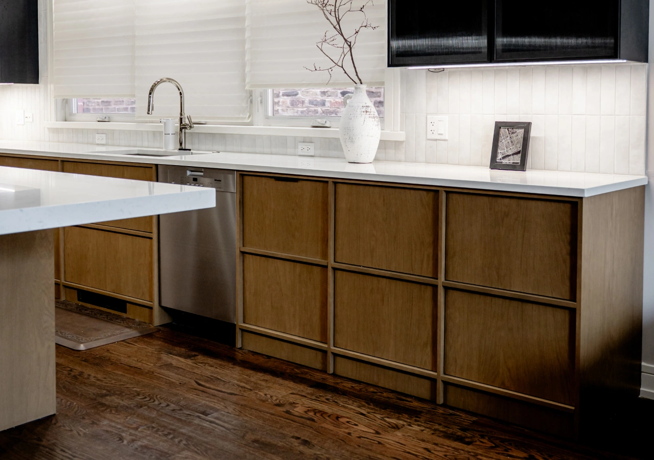 True handleless is ideal if you’re aiming for an architectural, continuous line across the kitchen and want the cabinetry to read like millwork. If you want most of the look with less complexity, integrated pulls (like J-pull) are often the sweet spot.