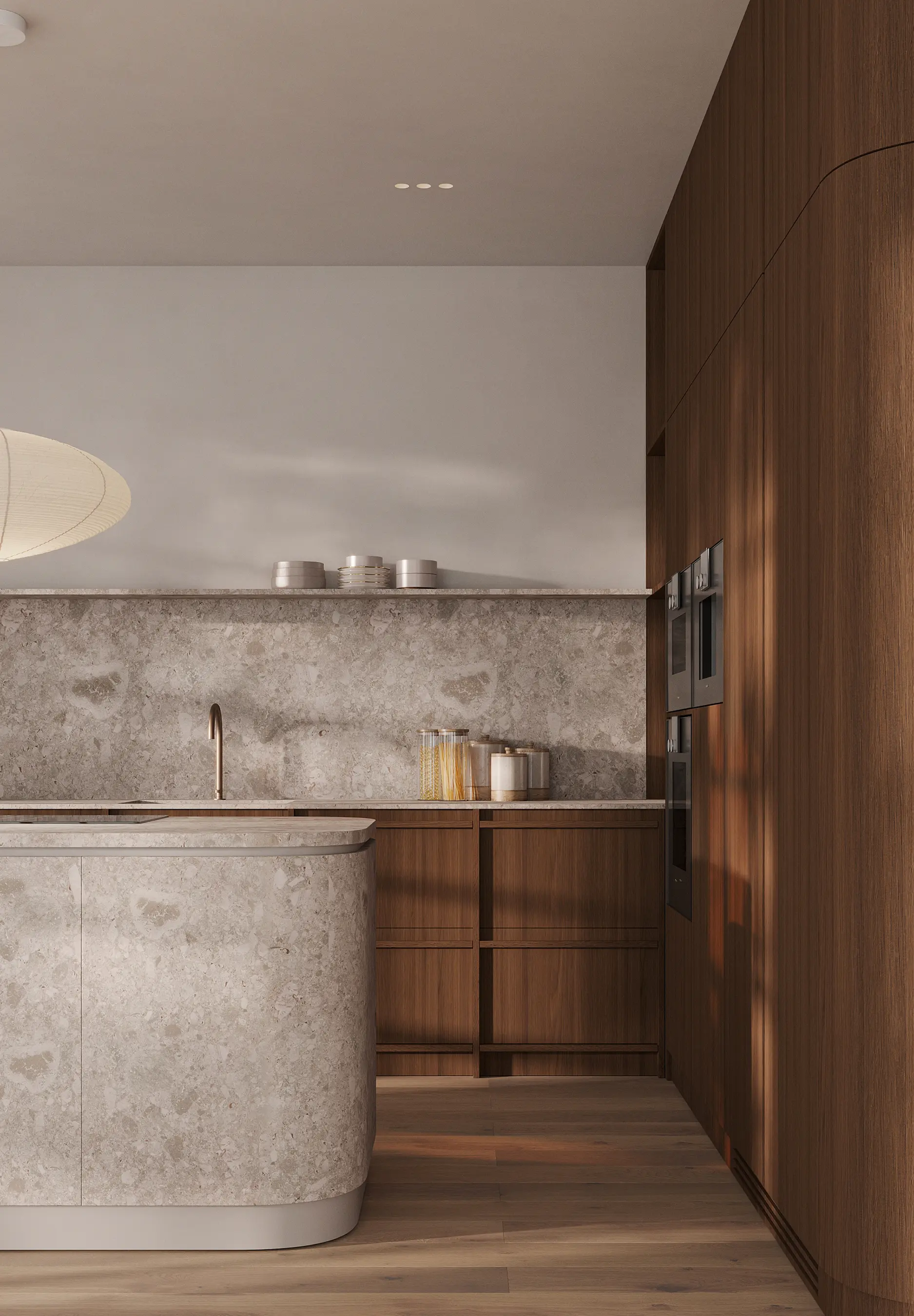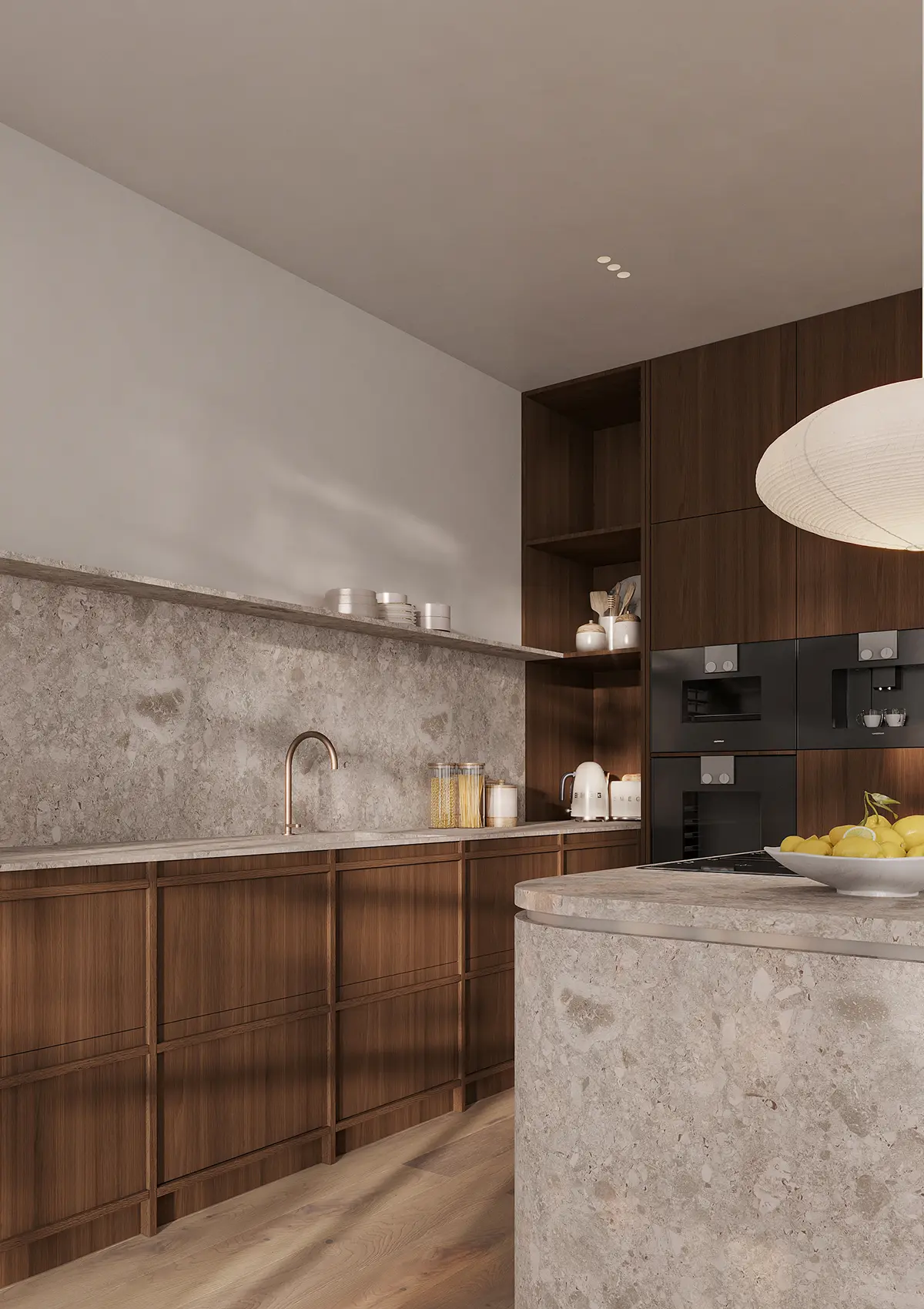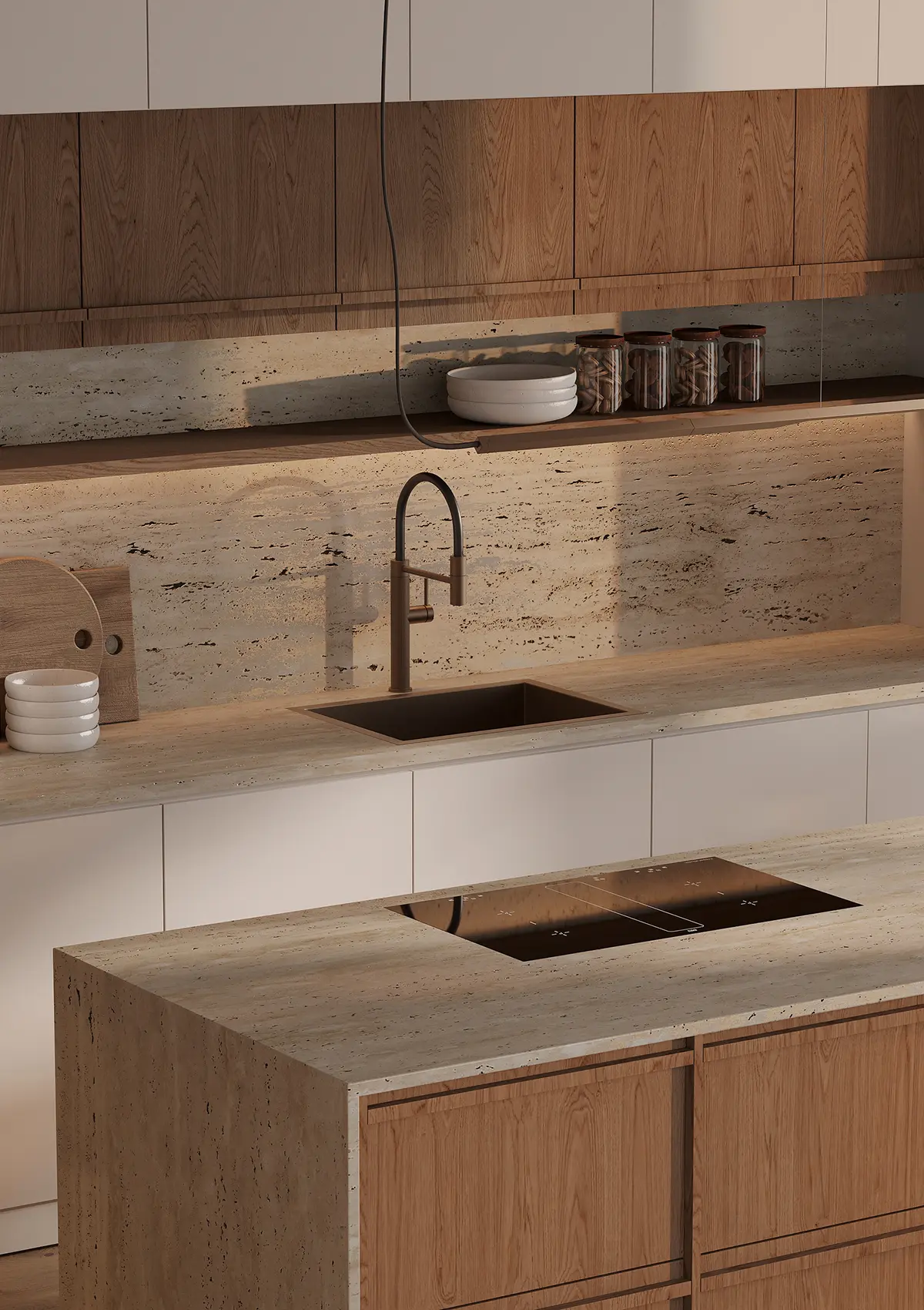 A Japanese kitchen built around natural materials and controlled composition, with a focus on balance, proportion, and quiet detail.